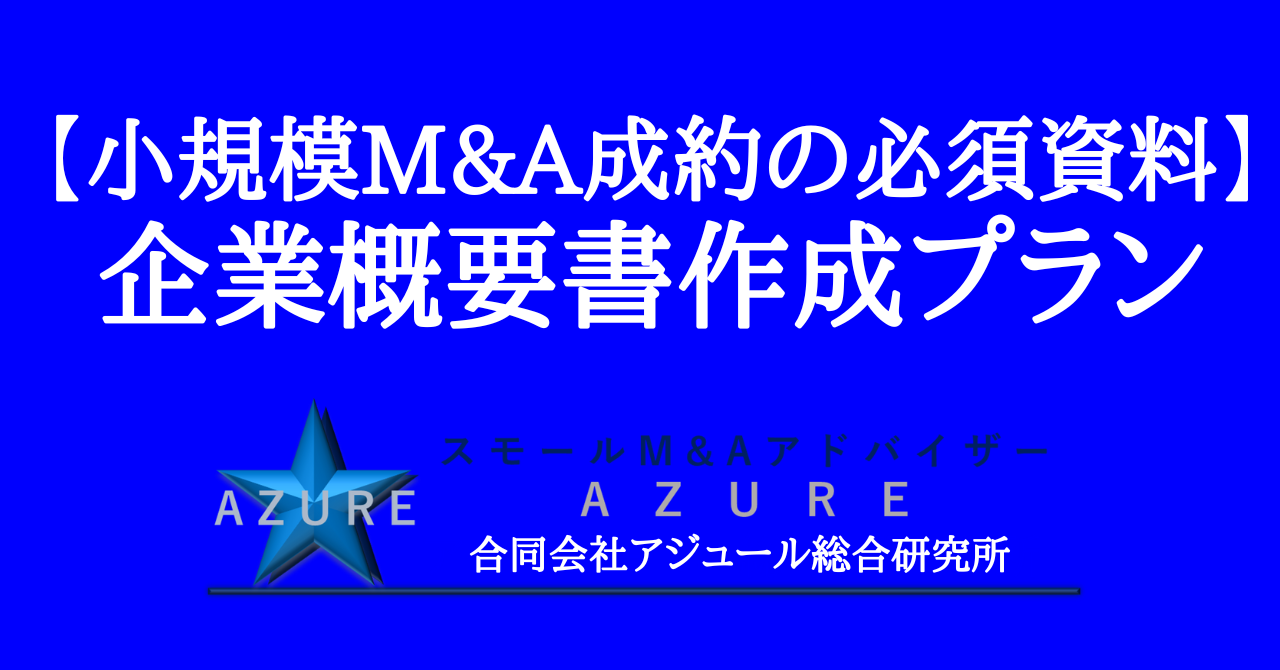 「企業概要書(事業概要書)とは、譲渡する企業(または事業)の詳細情報を掲載した資料のこと」です。 作成の主旨としては、買い手様に詳細情報を提供する事により、譲渡する企業(または事業)をより深くご理解いただき、前向きかつ迅速なご検討といただくことにあります。 弊社とのアドバイザリー契約をご締結いただいた方には、無料で作成させていただいておりますが、ご自分で買い手様とのM&Aをご成約されたい方などもいらっしゃるため、企業概要書(事業概要書)作成のみのプランもご用意致しました。 ご注意いただきたい事項としては、弊社方針として、かなり詳細な内容とし、買い手様に売り手様企業(または事業)の良さをアピールさせていただいております。 これを受け、資料作成のための必要資料のご提出・綿密なヒアリングをさせていただいております。 この点、お時間とお手数はいただくと言うことをお含みおきいただけますと幸いです。 |